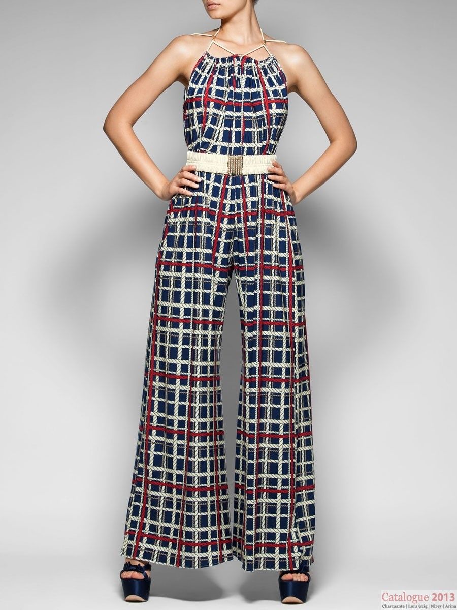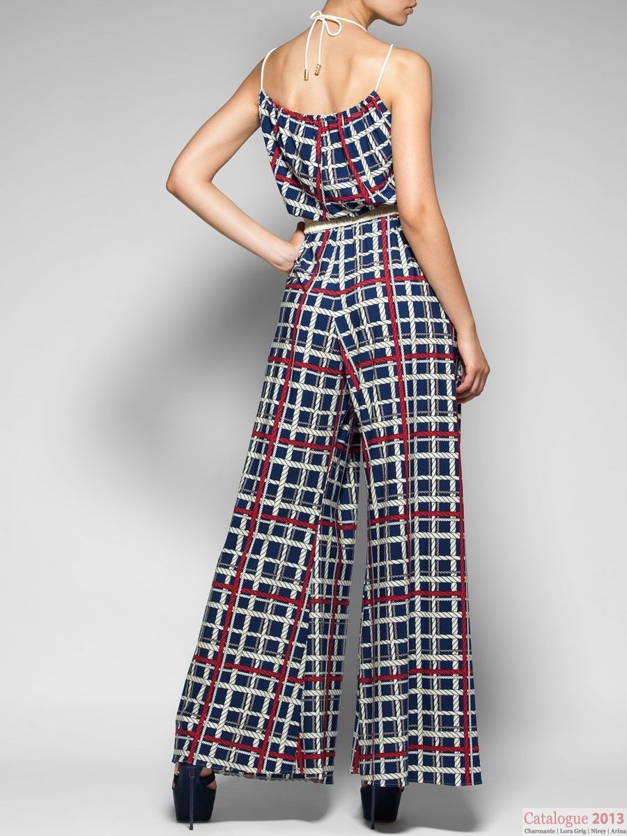 New style! Эффектный комбинезон с широкими брюками и регулируемым шнурком на шее. Пояс-гафре с изысканной пряжкой для подчеркнутого силуэта. Изысканный "морской" принт в виде сети из контрастных канатов сочетании с молочным цветом моделируют идеальный силуэт. H1 S/M, L/XL