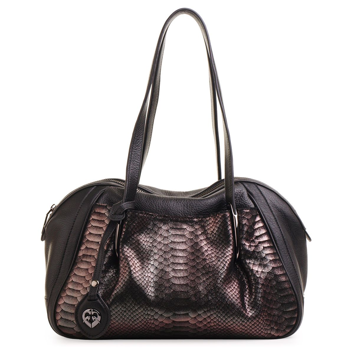 Сумка женская из натуральной кожи - закрывается на молнию Внутри: - перегородка на молнии - два открытых кармана для телефона и мелочей - карман на молнии Снаружи: - два кармана на магнитной кнопке